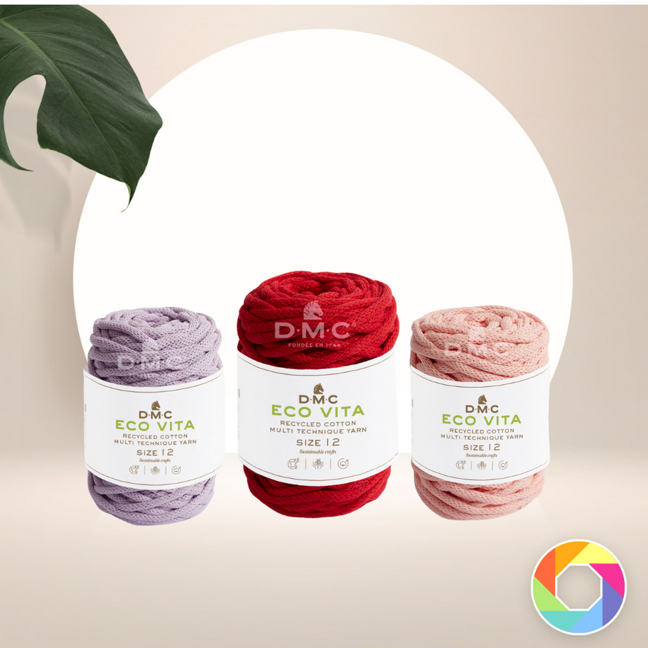 Eco Vita 12 est un fil de coton recyclé, idéal pour créer vos propres pièces de décoration d'intérieur. Utilisez ce fil tubulaire de 4 mm pour tricoter, crocheter ou macramer des paniers, des pots de fleurs, des coussins, des abat-jour et bien plus encore ! Composé à 80% de matériaux recyclés, Eco Vita 12 est un fil écologique pensé pour le bien-être de la planète.